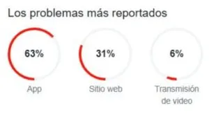 Los principales reportes provienen de la falla en la aplicación con un 63%, seguido de fallas en el portal web con el 31% y la transmisión de video con el 6%.