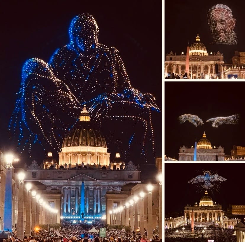 El Vaticano se convierte en un mega recital con un show de 3500 drones que proyectó la cara del papa Francisco